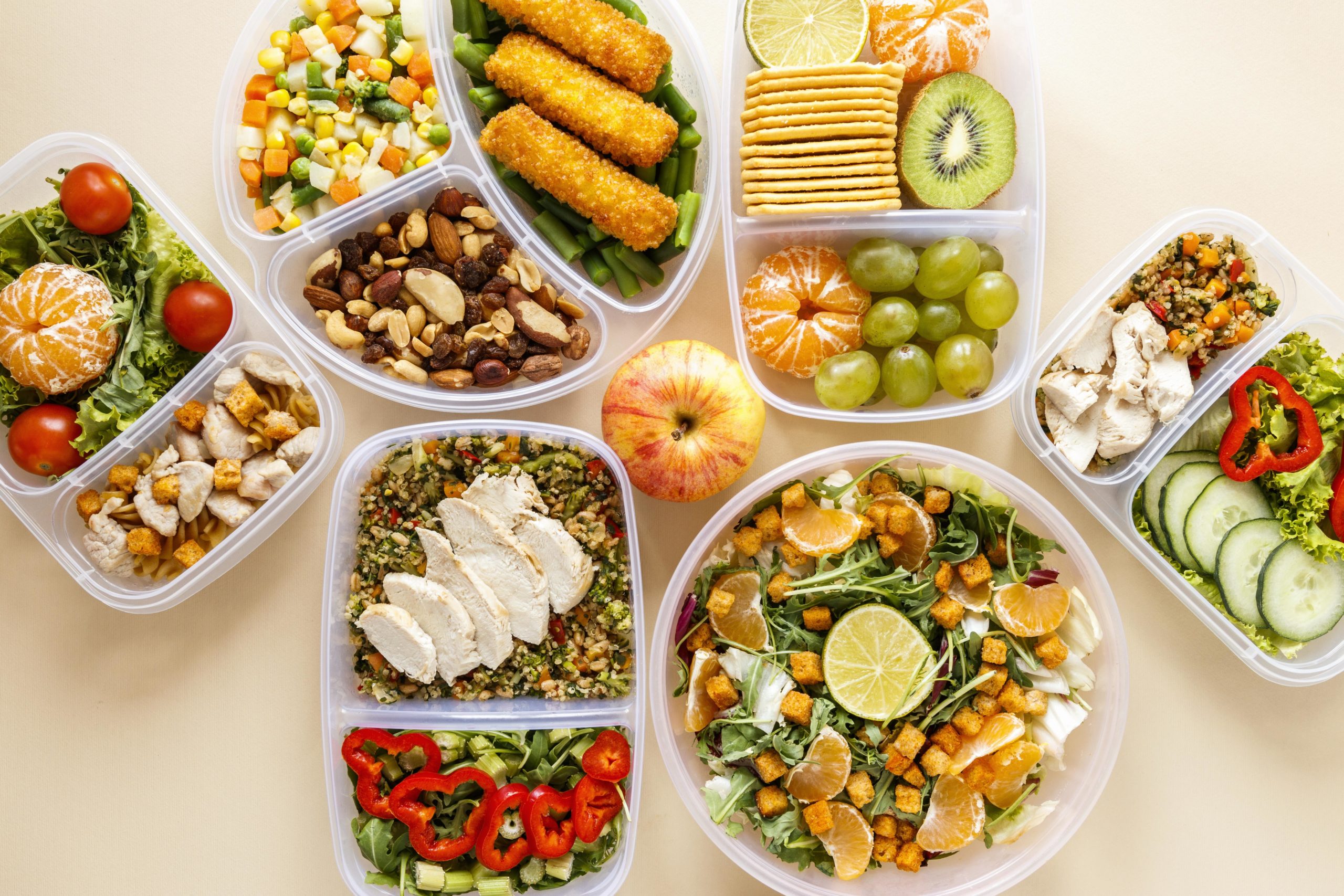 В состав суточного рациона должны входить: крупы и картофель, овощи и фрукты, мясо, курица, рыба, яйца, молоко, соя и орехи.